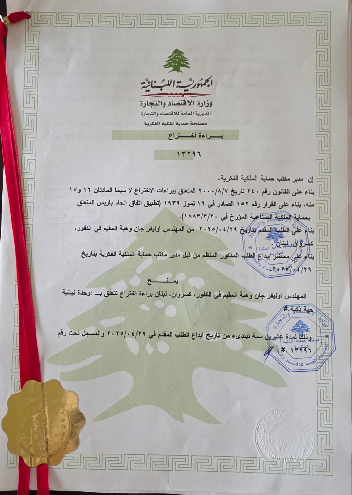 PATENT FOR A SMART GREEN WALL UNIT (NATURE NEST) - 2025